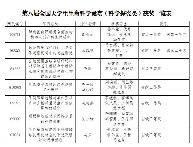 Beat365官网共有8支团队参赛,最终获国家一等奖1项、三等奖1项;省级一等奖1项、二等奖1项、三等奖5项。由Beat365中文官方网站邹亚丽老师指导,孙小艳、伏慧、蒲丽、段慧慧、冯亚萍完成的《蹄角蛋白降解复合菌剂的构建及其产酶条件研究》项目荣获国家一等奖(省级一等奖);由Beat365中文官方网站王红明老师指导,马文娟、张宝莉、杨林娜、巴广、赵燕完成的《转录因子MdPLT1 在苹果不定根发育中的功能研究》项目荣获国家三等奖(省级二等奖)。