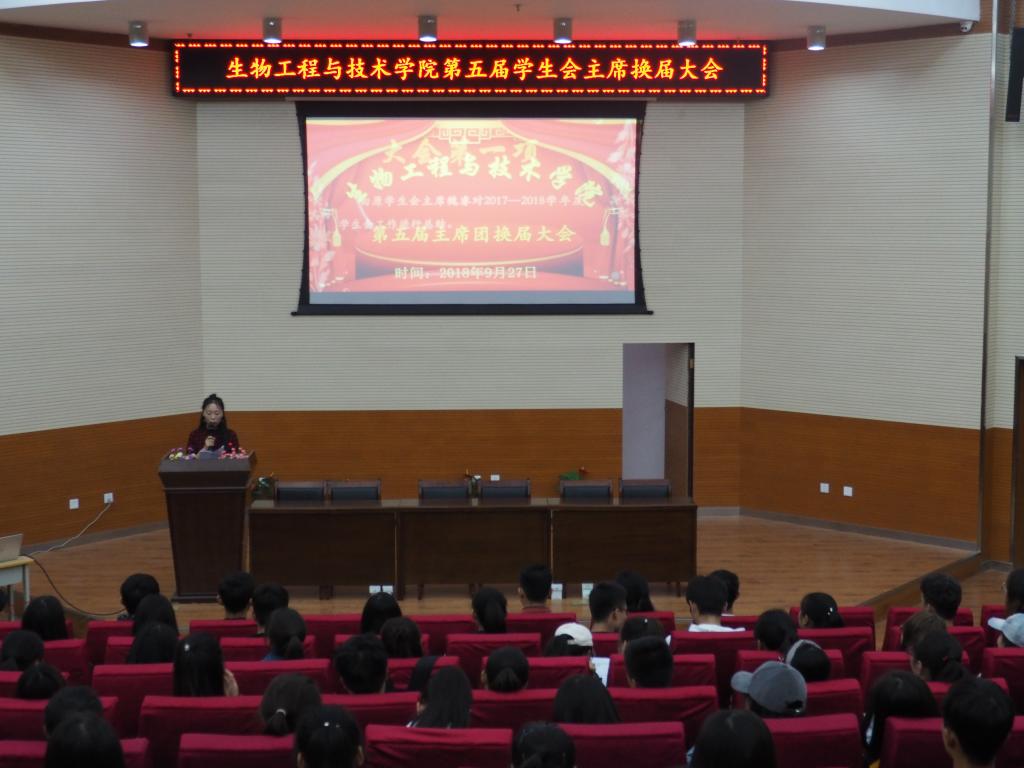 2018年9月27号下午,Beat365中文官方网站在3号报告厅举行第五届学生会主席换届大会,出席本次活动的人员有:Beat365中文官方网站党总支书记马纲、分团委书记杨金凤、辅导员姬静、王镛、学生会全体成员、18级全体学生。会议由孙文媛主持。