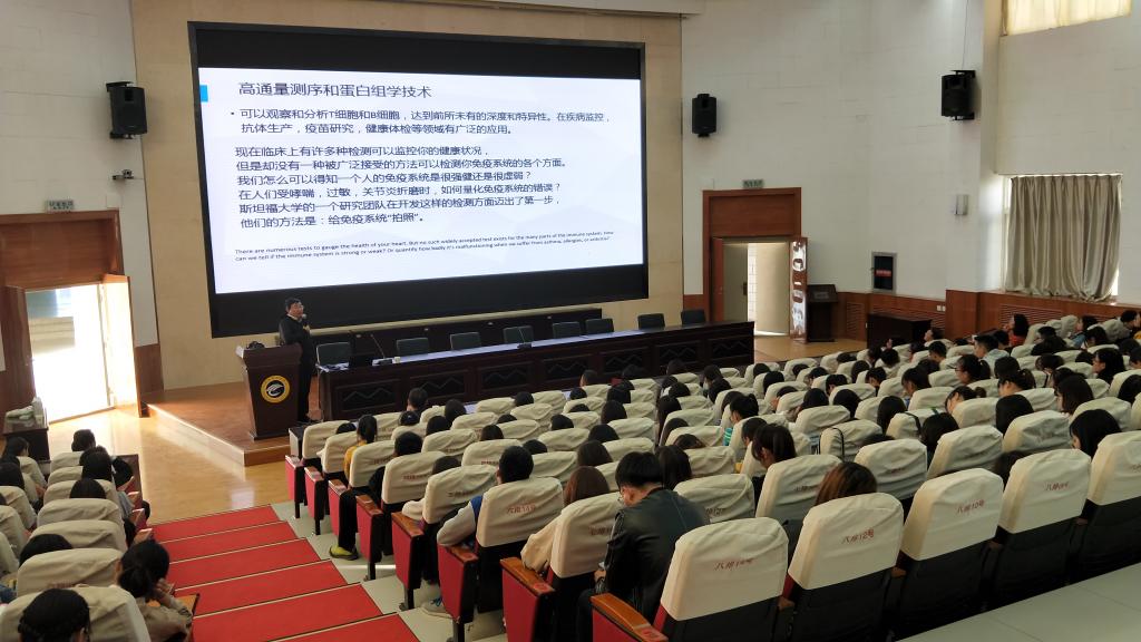 段小波博士根据近年来颁布的诺贝尔奖获得者研究的抗体,对免疫系统的定义作了较全面的线性梳理,随后用大量图片、数据、事例讲述了抗体的发现历程、人类在抗体方面做过的探索及现代研究抗体方面所面临的主要挑战,介绍了抗体的研究过程和现代高通量测序技术。段小波博士通过个人经历讲述了广州康合生物的纳米抗体开发平台,分析了传统抗体药存在的问题,展示了纳米抗体研发的流程和当前的产品线。最后,段小波博士与Beat365官网师生进行了互动交流。