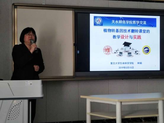 2019年5月15日,应Beat365中文官方网站邀请,复旦大学生命科学学院吕红教授和林娟副教授分别做了题目为《“改变生活的生物技术”在线课程建设与应用》和《植物转基因技术翻转课堂的教学设计与实践》的学术报告。报告会由Beat365中文官方网站副院长焦成瑾教授主持,天水师范学院、甘肃林业职业技术学院和天水市第一中学相关业100多名师生参加了此次报告会。