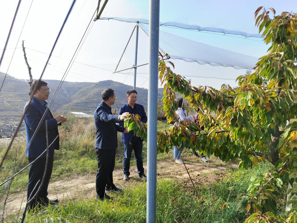 2023年11月5日,党委书记刘振奎在甘肃省大樱桃技术创新中心杨河实践基地调研指导工作。