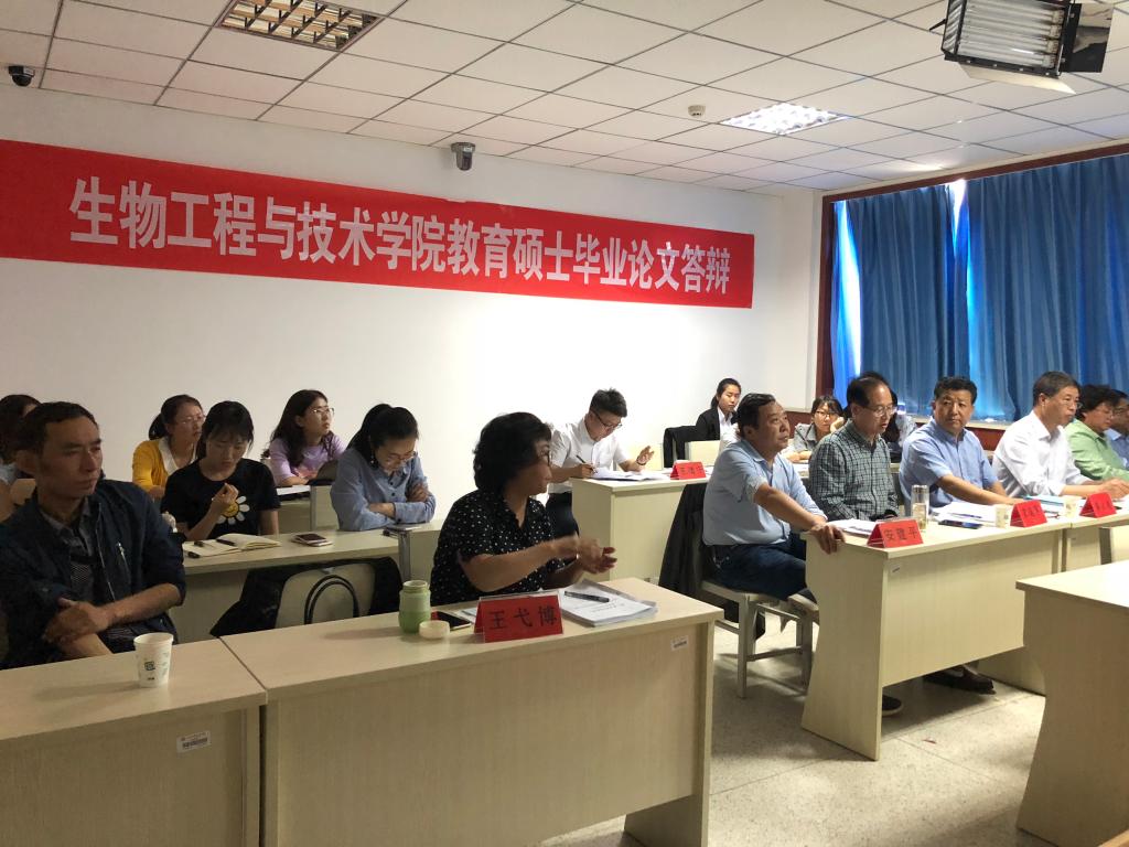 2018年6月2日,在4号实验楼517微格教室举行了Beat365中文官方网站2018届教育硕士毕业论文答辩会。为保障答辩质量,学院专门成立了教育硕士答辩委员会,答辩委员会主席由西北师范大学生命科学学院龚大洁教授担任,成员包括宋廷军、石志学、安建平、焦成瑾、王弋博、袁毅君,答辩秘书为王倩宁。