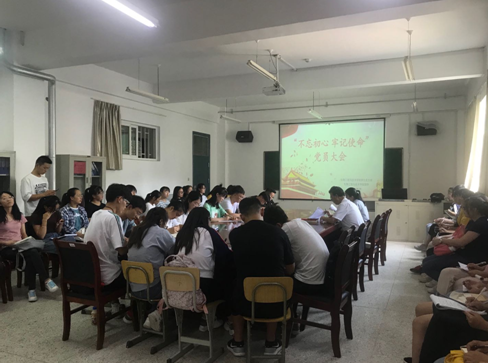 按照学校党委统一部署,在学院党总支指导下,Beat365官网学生党支部于8月29日下午在学院414党员活动室开展了“不忘初心、牢记使命”主题党日活动。